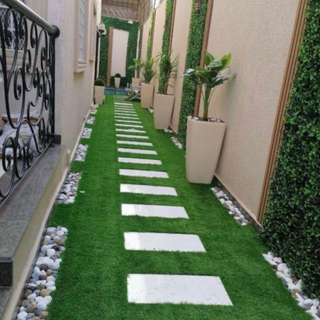في جنة الطبيعة لتنسيق الحدائق بالأحساء نوفر خدمة توريد وتركيب العشب الصناعي الأرضي بجودة عالية تضمن لك مظهراً طبيعياً يدوم طويلاً. يتميز العشب الصناعي بسهولة الصيانة ومقاومته للعوامل الجوية، مما يجعله خياراً مثالياً للحدائق، الملاعب، والجلسات الخارجية.