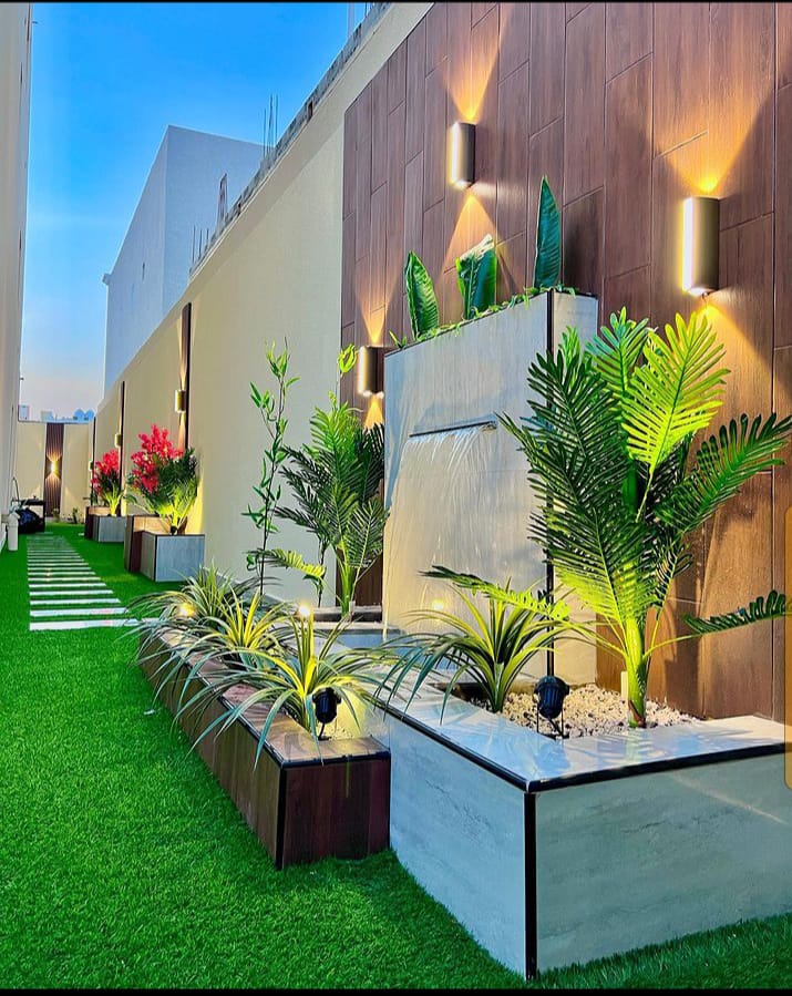 متخصصون في توريد وتركيب العشب الصناعي توريد وزراعة العشب الطبيعي تصميم الشلالات والنوافير تمديد شبكات الري تصميم المظلات