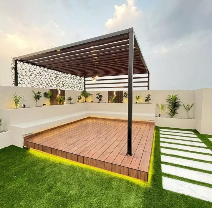 في جنة الطبيعة لتنسيق الحدائق بالأحساء نقدم حلول تصميم وتنفيذ المظلات الحديثة التي تجمع بين الأناقة والمتانة. نوفر مظلات بموديلات عصرية وخامات عالية الجودة تحمي من حرارة الشمس وتضفي لمسة جمالية على المساحات الخارجية، لتمنحك الراحة والظل مع مظهر راقٍ يليق بحديقتك.