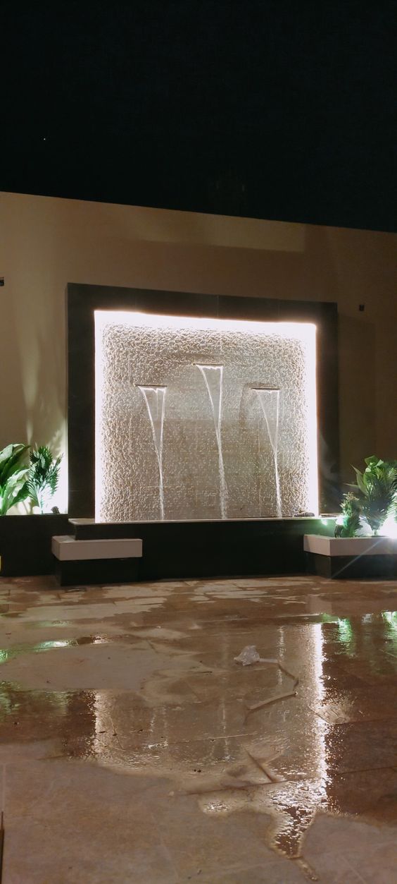 • نوافير مضيئة: مدمجة مع إضاءات ملونة تمنح جمالاً ليلياً ساحراً.
